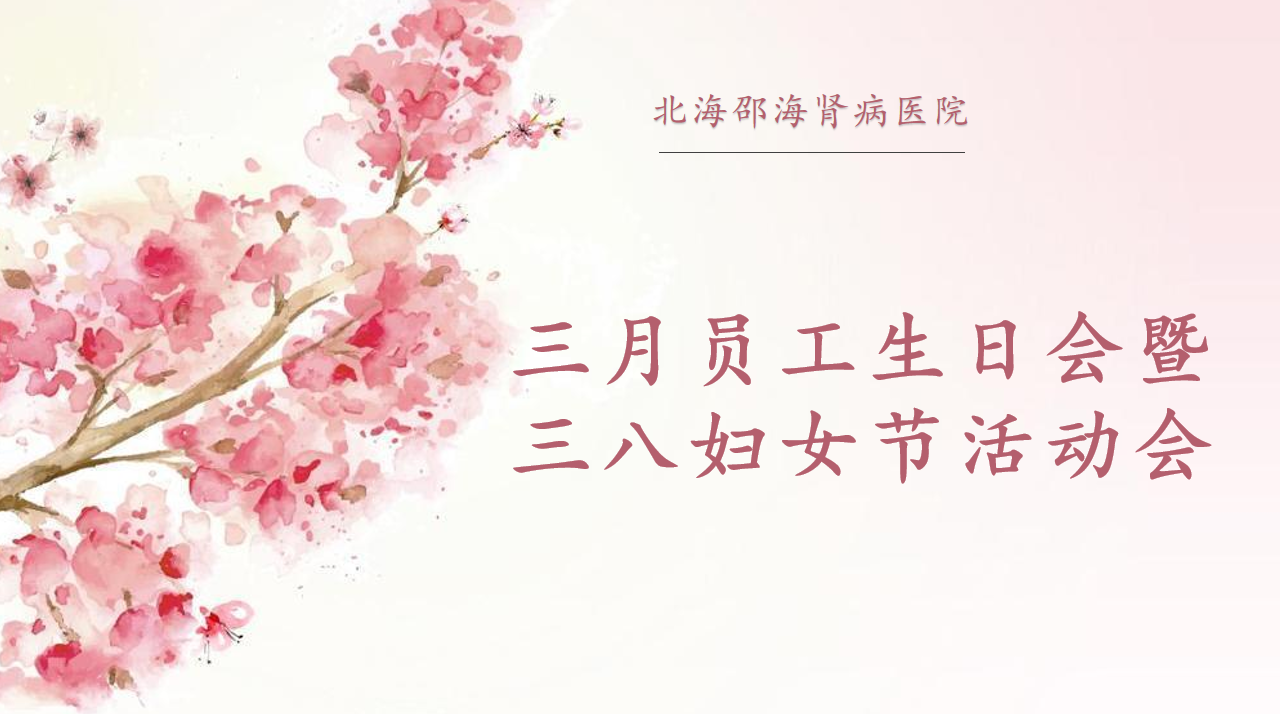陽(yáng)春三月,萬(wàn)物復(fù)蘇,在這充滿(mǎn)生機(jī)與希望的季節(jié)里,北海湘海腎病醫(yī)院舉行了一場(chǎng)溫馨的三月員工生日暨三八婦女節(jié)慶祝活動(dòng),為醫(yī)院的醫(yī)護(hù)員工們帶來(lái)了滿(mǎn)滿(mǎn)的溫暖與感動(dòng)。