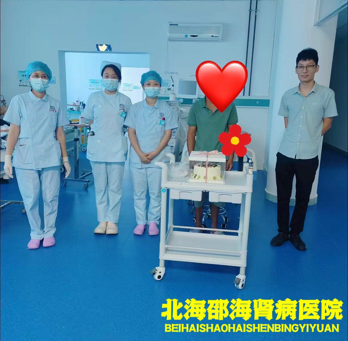 在我院醫(yī)護(hù)人員的悉心照料下,腎友廖叔叔開心過生日,愿他健康快樂每一天。在廣西北海有一個溫馨的地方——邵海腎病醫(yī)院。這里有一群醫(yī)術(shù)精湛、心靈手巧的醫(yī)護(hù)人員,他們以滿腔的熱情、專業(yè)的知識和誠懇的態(tài)度,為每一位入院做透析治療的腎友提供細(xì)致入微的關(guān)懷。202